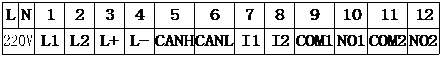 I1、I2:无源输入端口,用于接收外部无源开关量输入,有开关量短路输入时,控制器处于火警状态,切勿连接有源信号,否则会损坏接口。