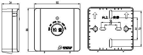 90mm长×86mm宽×34mm厚(含明装底座) 90mm长×86mm宽×26.5mm厚(不含明装底座)