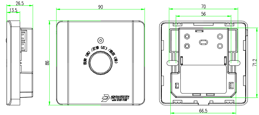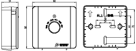 90mm长×86mm宽×34mm厚(含明装底座) 90mm长×86mm宽×26.5mm厚(不含明装底座)