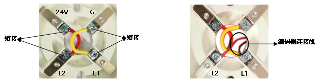 编址底座24V与L2短接,G与L1短接,编码器连接线分别接在L1、L2上,如下图。