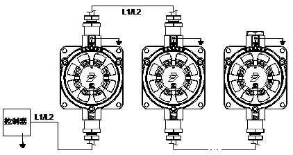 端子L1、L2分别接信号线L1和L2,无极性,信号线采用ZR-RVS-2×1.5mm²双绞线。