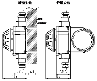 安装时需根据现场情况配接具有防爆合格证的连接件配(电缆引入装置、防爆挠性软管、防爆接线盒、封堵件等)。