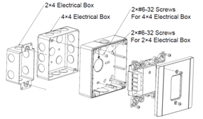 1. Mount the FW800 base onto a 2X4 or 4x4 electrical box using the screws provided, as illustrated in Figure 1.