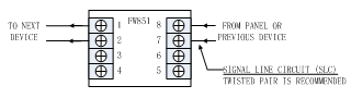 The FW851 isolator module isolates the short point on the signaling line circuit (SLC) or Data Communication Link (DCL). The internal relay will be triggered to cut down the line power where the short trouble is detected. The device LED will indicate the trouble condition by yellow steady on. A return to normal condition will cause the internal relay to normal position to restore the line power and the device LED indicator will return to the idle condition. The FW851 does not occupy an address on the Fire Alarm Control Panel’s SLC/DCL, so no address programming is required. The FW851 is a UL listed product according to UL864 and ULC-S527 for Fire Protective Signaling Systems for indoor use.
