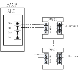 2. Make a short circuit trouble on the SLC/DCL. Check the FW851 internal relay to see if it is triggered and to verify if the LED turned to steady on.