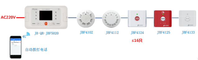 回路采用二线制输出,接线简单,易操作,支持最多16点现场部件连接,如家用感烟与感温火灾探测器、手动报警开关、输入模块等设备。通讯距离1000m。
