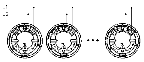 端子L1、L2分别接信号线L1和L2,无极性,信号线采用ZR-RVS-2×1.5mm²双绞线。