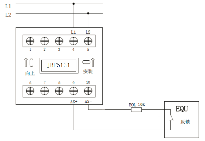 监视无源闭合应答的现场设备时,AS+端子9、AS-端子10接应答(无源触点),且需在监视设备的动合端并联10KΩ终端电阻。