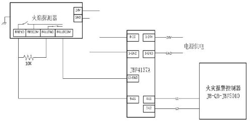 图2 火焰探测器与火灾报警控制器JB-QB-JBF5010接线图