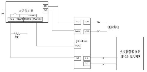 图2 火焰探测器与火灾报警控制器JB-QB-JBF5010接线图