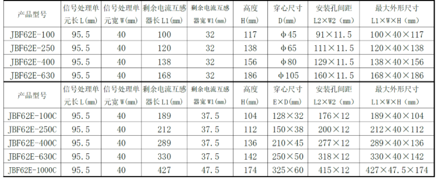 JBF62E-100:210±30g、JBF62E-250:300±30g、JBF62E-400:410±50g、 JBF62E-630:550±60g、JBF62E-100C:420±50g、JBF62E-250C:560±60g、 JBF62E-400C:1050±100g、JBF62E-630C:1550±200g、JBF62E-1000C:3350±200g |