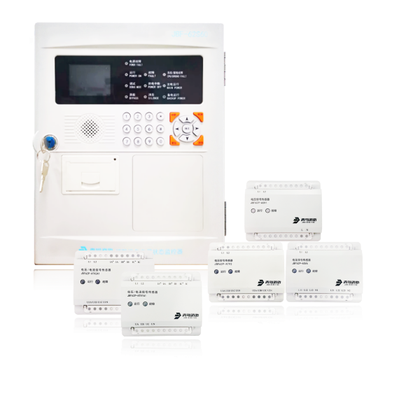 JBF-62S60型消防设备电源监控系统由JBF-62S60型消防设备电源状态监控器、电压/电流信号传感器(JBF62P-ATV2A1、JBF62P-ATV1A1)、电压信号传感器(JBF62P-ATV2、JBF62P-ASV6、JBF62P-ASV1)组成。