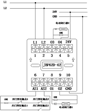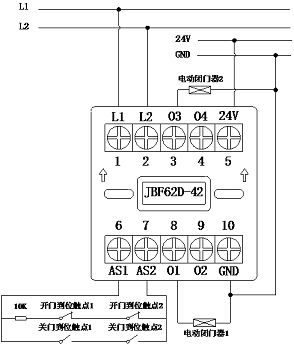 启动后输出DC24V:O1(端子8)和O2(端子9):接被控设备1;O3(端子3)和O4(端子