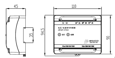 传感器与电源输出端间的交流电压线截面积不小于1.5mm2;交流电流线截面积不小于2.5mm2。