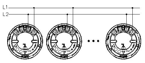 端子L1、L2分别接信号线L1和L2,无极性,信号线采用ZR-RVS-2×1.5mm²双绞线。