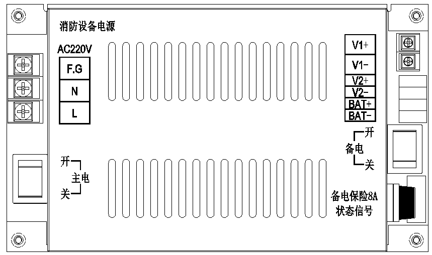 F.G、N、L:交流220V接线端子及机壳保护地接线端子。
