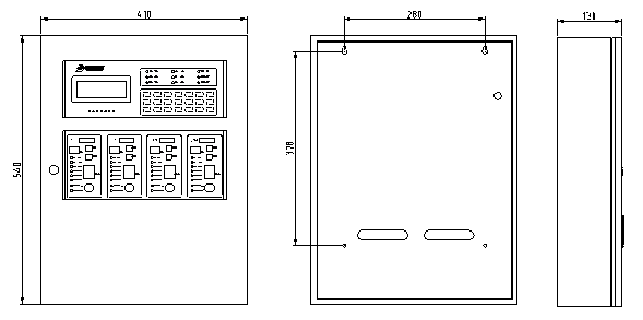 壁挂式安装,具备4/2条气体灭火回路,完成4区/2区的气体灭火联动控制。
