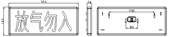 具有“放气勿入”红色发光标志,背景为白色,文字高度为107mm。