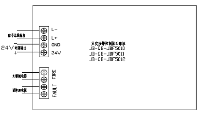 FAULT、FIRE:火警继电器及故障继电器输出端子,输出容量:无源DC30V/2A。