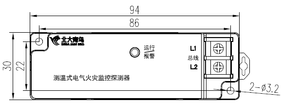 探测器与电气火灾监控设备互连,连接方式如下图所示,将监控设备的总线接口L+、L-任意连接在JBF6119型电气火灾监控探测器的总线信号接口L1、L2上。