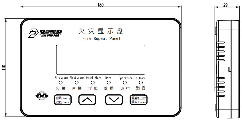 配接目前所有在售火灾报警控制器,采用192×64点阵式液晶,显示信息丰富,显示效果清晰。