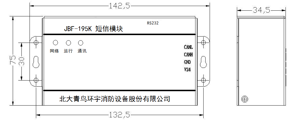 端子CANL、CANH分别接火灾报警控制器联网端子,有极性。