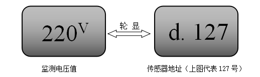 当传感器线路连接正常、监测电压正常情况下,传感器液晶屏将轮显目前监测电压值及本传感器在回路中所占地址号,如下图: