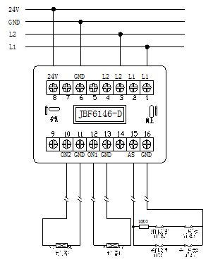 L1(端子1、端子2)、L2(端子3、端子4):接通回路总线,无极性;